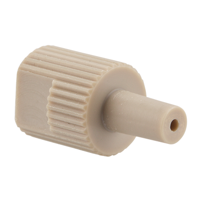 Adapter, for use with low to medium pressure HPLC. Waters female to 10-32 male connection, 0.40 mm / 0.016 bore size. Natural PEEK. ARE-Applied Research brand. Bulk Price.