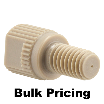 Adapter, for use with low to medium pressure HPLC. Waters female to 10-32 male connection, 0.40 mm / 0.016 bore size. Natural PEEK. ARE-Applied Research brand. Bulk Price.
