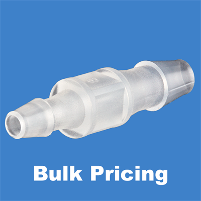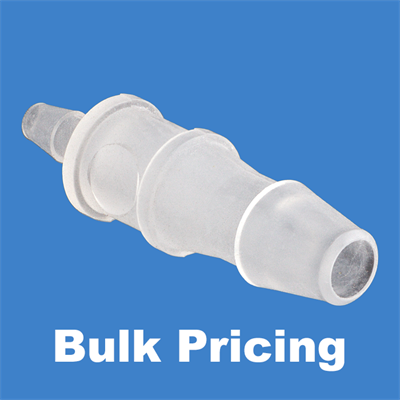 Adapter, for use with low pressure. Barbed connection for 3/32 inch to 1/8 inch tubing. Polypropylene. ARE-Applied Research brand. Bulk Price.