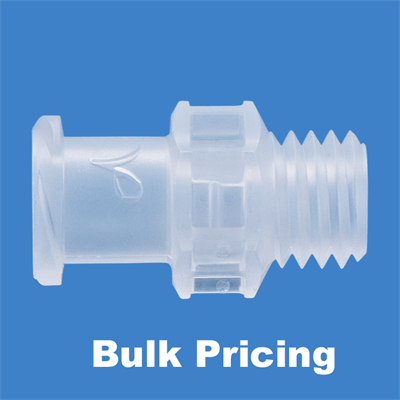 Adapter, for use with low pressure. Male luer to 1/4-28 male connection. Polypropylene. ARE-Applied Research brand. Bulk Price.