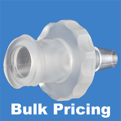 Check Valve, luer, pocket for 0.122-inch (3.1 mm) OD tubing to male locking luer. Clear-Transparent MABS and Blue-Transparent SAN with Silicone Diaphragm. Bulk Price.