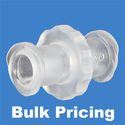 Adapter, for use with low pressure. Female luer lock to female luer lock. Polypropylene. ARE-Applied Research brand. Bulk Price.