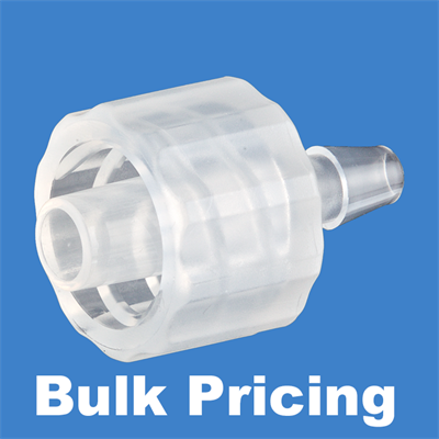 Adapter, for use with low pressure HPLC. 3/32 inch barbed connection. Polypropylene. ARE-Applied Research brand. Bulk Price.
