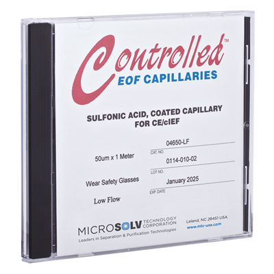 Controlling the electroosmotic flow (EOF) is one of the most important parameters in Capillary Electrophoresis. The Controlled Flow Capillaries™ are covalently bonded with an acrylamide derivative surface to keep the EOF independent of the pH from 1.5 to 8.0. The flow rates of these capillaries will be much faster and reproducible compared to bare fused silica.