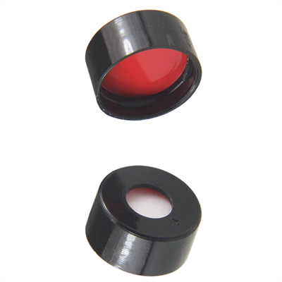 Caps, Snap Top, with Soft-Guard, White Silicone Rubber / Red PTFE Septa, fitted in smooth, polyethylene, Black Caps. For use with 11mm, 12x32mm Snap Top autosampler vials. Soft-Guard Brand. 100/PK.