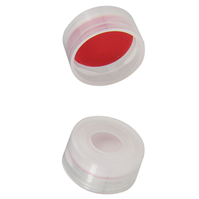 Caps, Snap Top, with 1.00mm thick, Red PTFE / White Silicone Rubber / Red PTFE Septa, fitted in smooth, soft polyethylene, Natural Translucent Caps. For use with 11mm, 12x32mm Snap Top autosampler vials. MICROSOLV Brand. 100/PK.