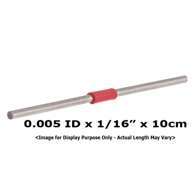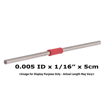 Tubing, Stainless Steel, Pre-Cut, 0.005 inch (0.13 mm) ID, 1/16 inch (1.60 mm) OD, HPLC grade, red band, 5 cm long. ARE-Applied Research brand. 1 EA.