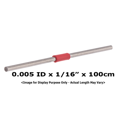 Tubing, Stainless Steel, Pre-Cut, 0.005 inch (0.13 mm) ID, 1/16 inch (1.60 mm) OD, HPLC grade, red band, 100 cm long. ARE-Applied Research brand. 1 EA.