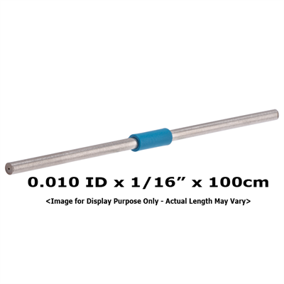 Tubing, Stainless Steel, Pre-Cut, 0.010 inch (0.25 mm) ID, 1/16 inch (1.60 mm) OD, HPLC grade, blue band, 100 cm long. ARE-Applied Research brand. 1 EA.