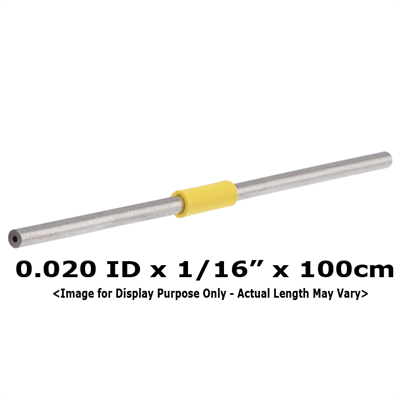 Tubing, Stainless Steel, Pre-Cut, 0.020 inch (0.50mm) ID, 1/16 inch (1.60 mm) OD, HPLC grade, yellow band, 20 cm long. ARE-Applied Research brand. 1 EA.