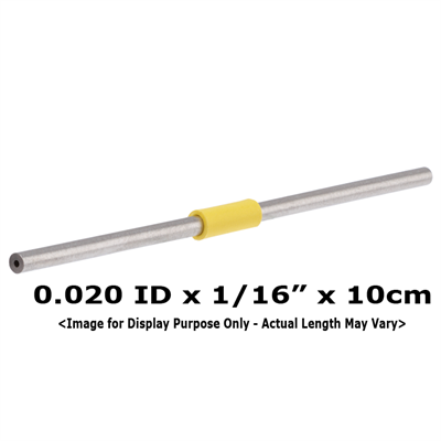Tubing, Stainless Steel, Pre-Cut, 0.020 inch (0.50mm) ID, 1/16 inch (1.60 mm) OD, HPLC grade, yellow band, 5 cm long. ARE-Applied Research brand. 1 EA.