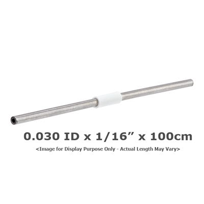 Tubing, Stainless Steel, Pre-Cut, 0.030 (0.75 mm) inch ID, 1/16 inch (1.60 mm) OD, HPLC grade, white band, 100 cm long. ARE-Applied Research brand. 1 EA.