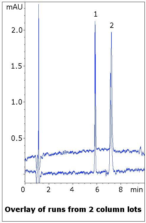 Furthermore, Sertraline’s amine group can produce problematic tailing with some Reversed Phase columns, but the Peak Symmetry obtained with this Method is very good. Data from two column lots is presented to illustrate Method Robustness and lot-to-lot consistency.