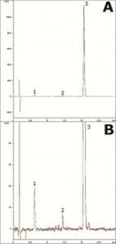 This gradient method features a separation of the three components of a hormone replacement formulation. Figure A shows a five run overlay of the formulation extract injections. Figure B shows a zoomed-in view so that the Estriol and Estradiol Peaks, which are present in much lower concentration than Progesterone, can be seen clearly. Figure B also shows separation of an impurity from the Progesterone Peak.
