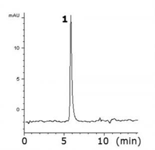 Sample Preparation: Prepared in 50% Solution A / 50% Solution B, concentration 1mg / mL Sample was filtered through a 0.45µm Nylon Syringe Filter prior to HPLC-UV injections (MICROSOLV Technology Corp).