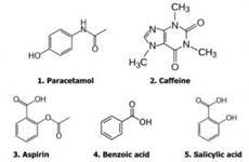 Sample Preparation: 0.02mg of Acetaminophen, Caffeine and 0.2mg of Aspirin, Benzoic Acid and Salicylic Acid were dissolved in 1mL of 50: 50 A / B Solution.