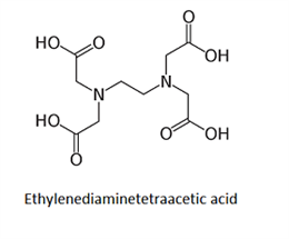 Note: EDTA is a synthetic metal complexing reagent that is used in a wide variety of industrial applications. Used a preservative, it has very low biodegradability thus remains in the environment for long periods of time. Found in sewer water, freshwater and ground water, it re-solubilizes precipitated toxic metals back into solution where they can be ingested by plants and animals.