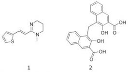 Note: The Pyrantel Pamoate combination is used as a deworming agent in both human and veterinary medicine. It acts as a depolarizing neuromuscular blocking agent. It is marketed under trade names such as Pin-X®, Pin-Rid® and Combatrin®.