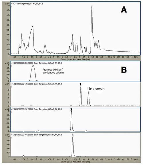 This Method, developed for the analysis of Tangerine Juice is Sensitive, Fast, Simple and Reproducible when using a Mass Spectrometer.