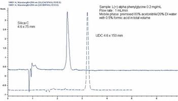 In this Method, a non-modified, silica-hydride HPLC Column, Cogent Silica-C, produces good Retention of the important amino acid L(+)-α-Phenylglycine with an Isocratic Mobile Phase. In addition the Retention Times are extremely Reproducible (%RSD 0.2).