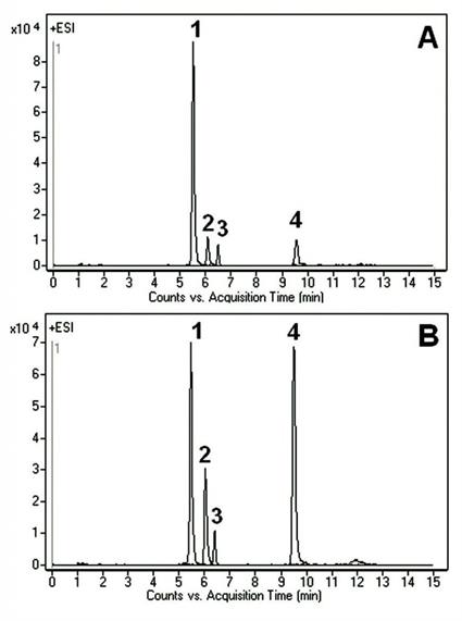 Sample Preparation: Methanolic extracts of proprietary cell cultures A and B, isolated by filtration.