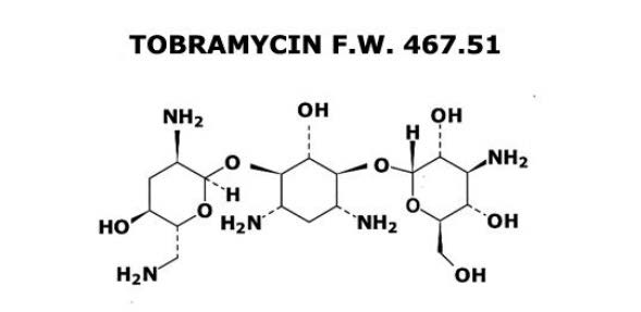 Note 2: Tobramycin is a water-soluble aminoglycoside antibiotic purified from the fermentation of the Actinomycete Streptomyces Tenebrarius. It is used in a variety of pharmaceutical applications: ophthalmic suspensions and ointments, such as TobraDex® (Alcon Inc., Fort Worth, TX), inhalation solutions such as TOBI® (Chiron Corporation, Woodstock, IL), and intravenous administrations such as Tobramycin Sulfate Injection (Eli Lilly and Company, Indianapolis, IN).