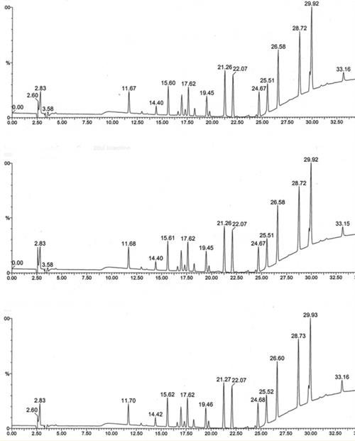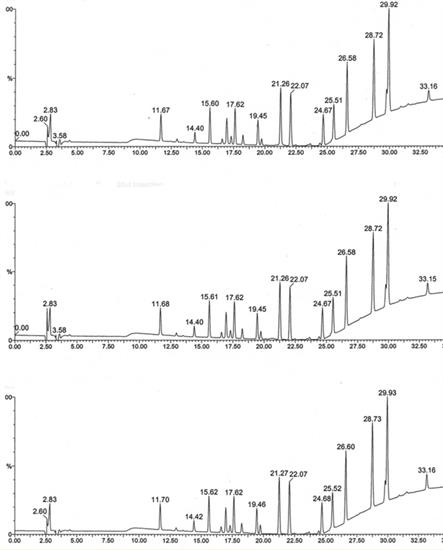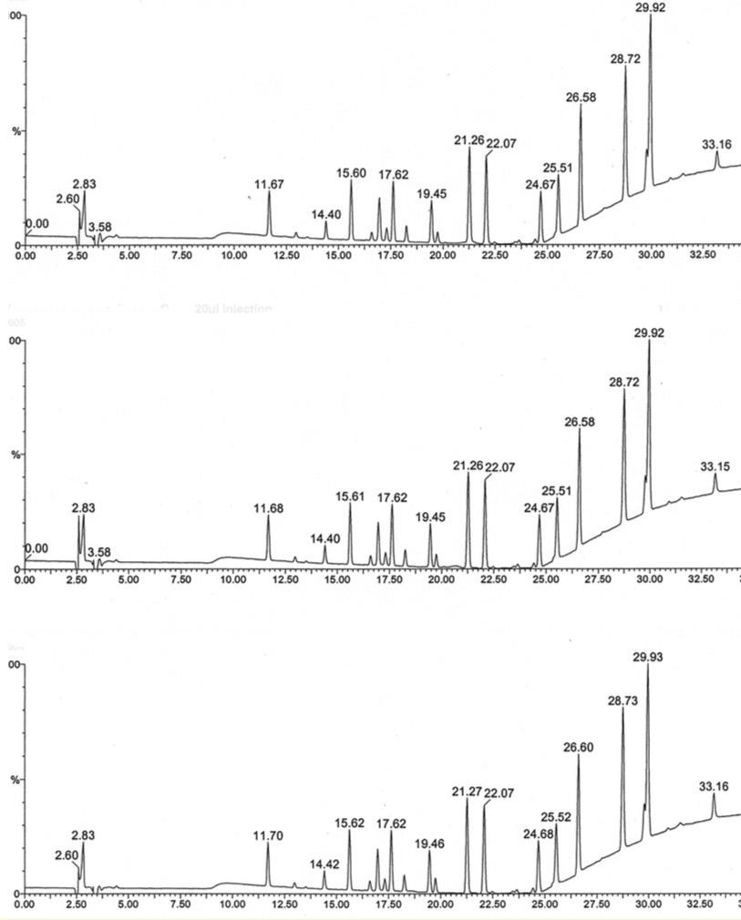 Sample Preparation: 3 Different Samples from the same peptide batch were digested using Trypsin and injected onto the HPLC Column.