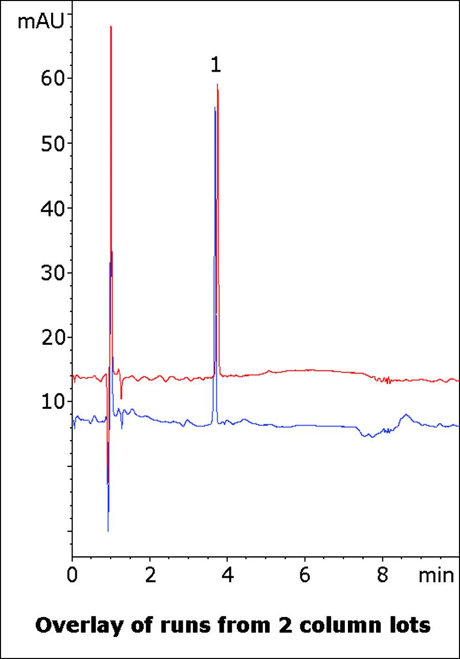 A Gradient was used to ensure components from the gel extract matrix do not build up on the Column and adversely affect robustness or Column life. The Column robustness is demonstrated by the overlay of injections from two different Column lots.