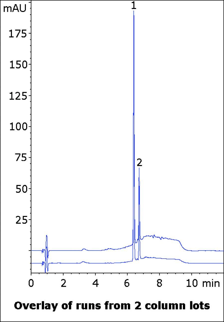 Furthermore, this AppNote presents data from two Column lots with the overlay of two runs in the figure below to exhibit Robustness and Precision of the Method.