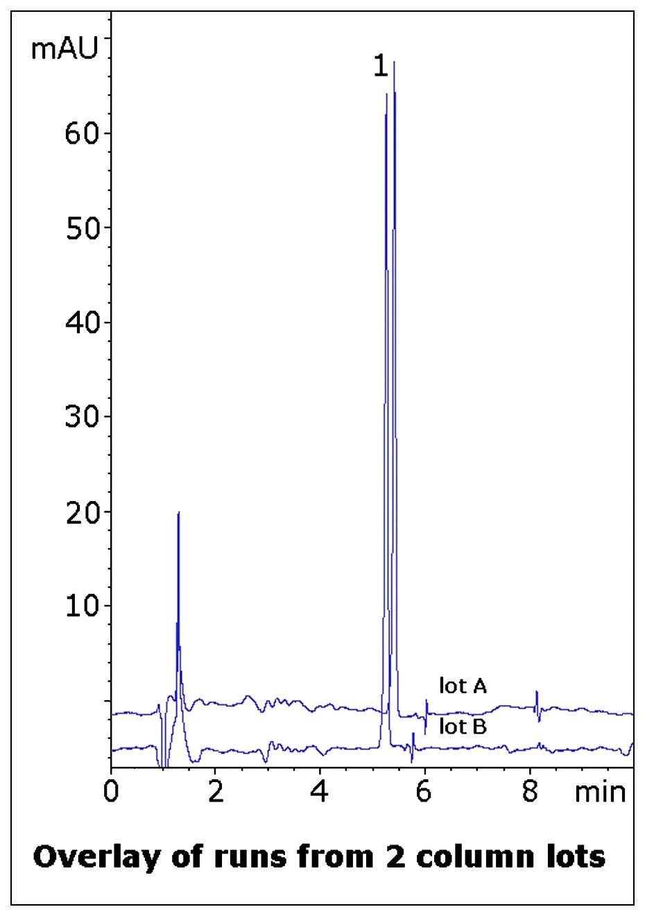 Data from two production lots of Columns is shown to illustrate the Reproducibility of the Method.