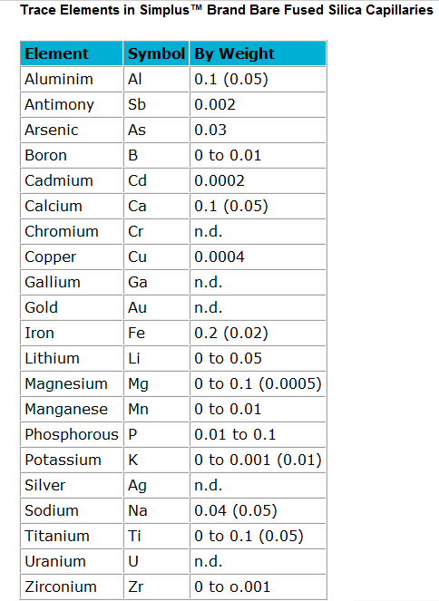 The capillary material consists of bare silica with an outer layer of polyimide coating. The polyimide serves to enhance the mechanical properties of the material (a bare silica capillary without polyimide is brittle not physically durable).
