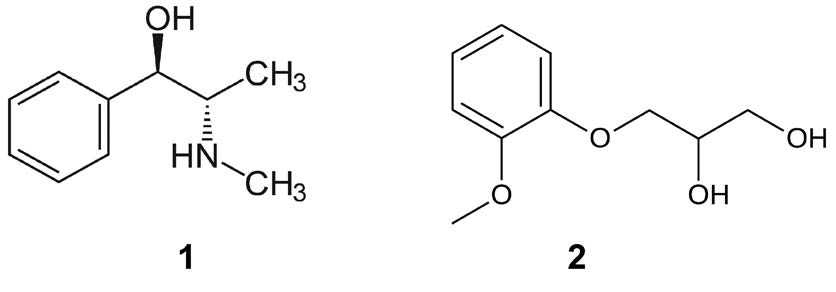1. Ephedrine,   2. Guaifenesin