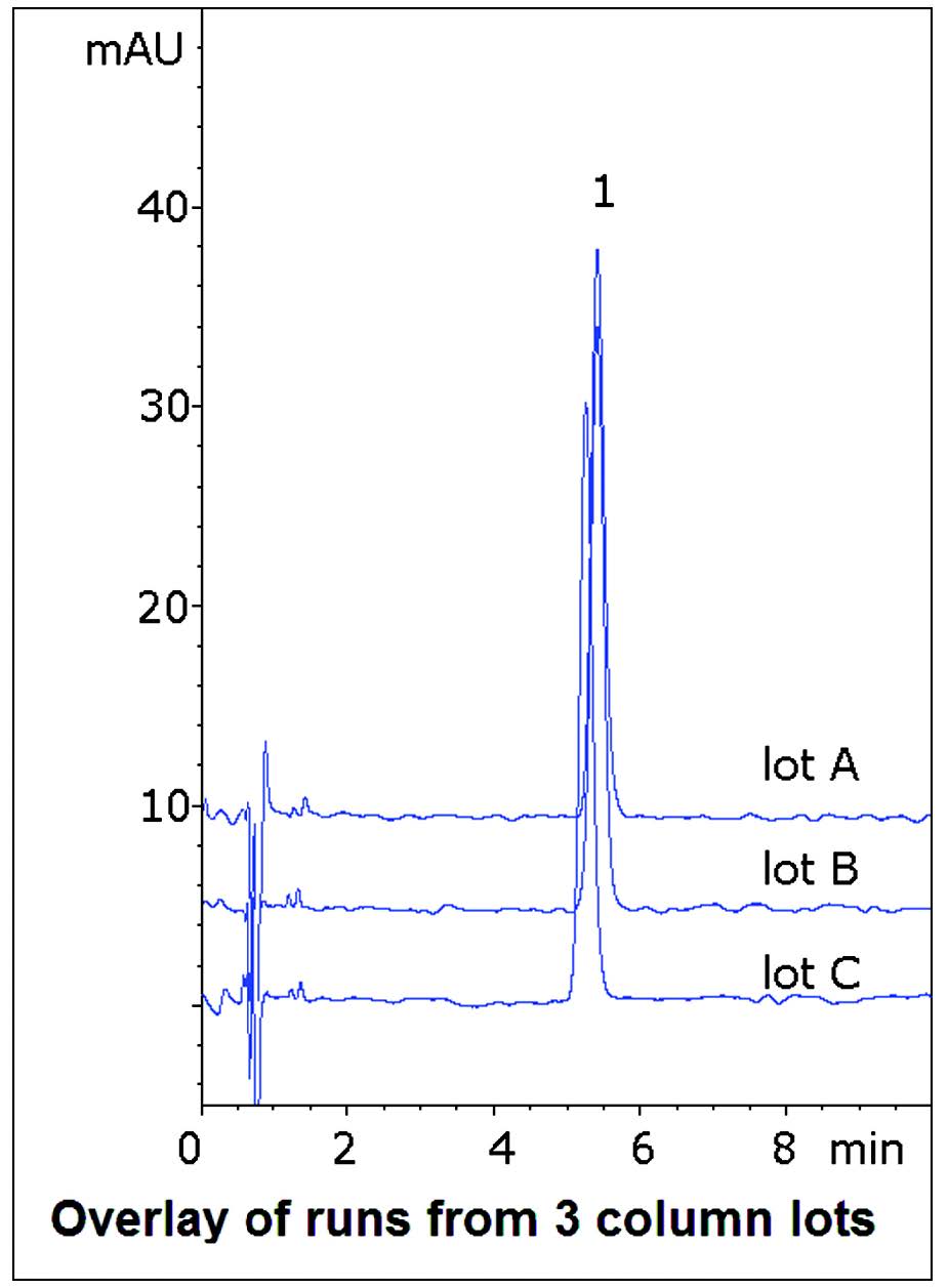 Data from three different Column lots is shown in the figure in order to demonstrate the Method Reproducibility and Robustness.