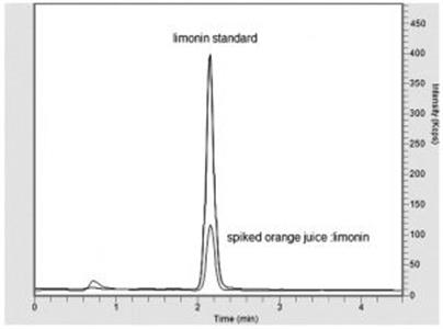 -- Spiked Orange Juice preparation: Orange juice was spiked with 2.5 ppm Limonin, filtered, and injected.