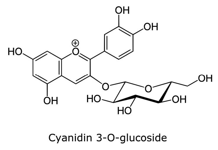 Note : Anthocyanins are present in fruits and vegetables. They are natural colorants (red color). Recent studies show that in addition to antioxidant properties they exhibit anticancer activity[1]. Also anthocyanins have benefits for the prevention of obesity and diabetes.