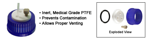 Note: these caps are not designed for applications which require sterility of the bottle's contents since they do not fully seal on mobile phase bottles. They will not allow a vacuum to be created in the bottle nor will they allow the bottles to be over pressurized which should always be avoided for safety reasons.