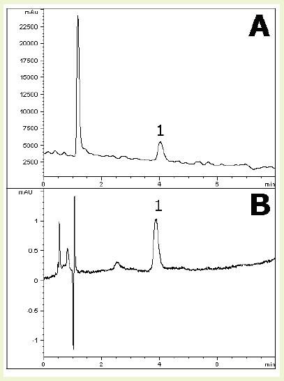 Sucralose does not exhibit significant UV absorption, hence detection of this analyte may be suited to Refractive Index (RI) as an alternative. Both approaches are shown in this application note, where UV and RI detector modules where attached in series. The relatively high concentration used in this example allowed for adequate detection in either case. These conditions were adapted from the USP assay method. A slight modification in the Water content was made to obtain higher retention.