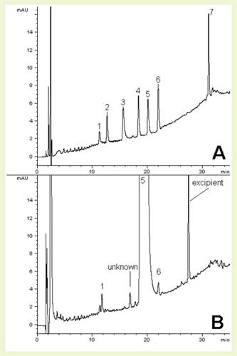 - Fig. B: 4 mg strength Chlorpheniramine Maleate tablet extract (2.4 mg/mL) spiked at 0.1% level with