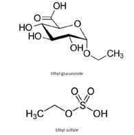 Notes: Ethyl glucuronide and Ethyl Sulfate are metabolites of Ethanol, which are formed by enzymatic conjugation of Ethanol with Glucuronic Acid. This process, known as glucuronidation, is the result of exposure to Ethanol. These compounds are used as a long-term biomarkers in humans to test for alcohol abuse.