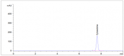 This simple Isocratic method may be used to quantitate this important drug. The method maintains consistent and reliable results as the peak values were measured for week-long intervals.  The %RSD for retention times for both standards and sample were less than 0.4%.