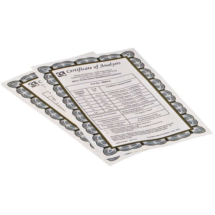 HSQ Kit, Complete. 75mm HPLC column, test solutions, accessories & software for performance qualification. Chemical Solutions brand. 1 EA.