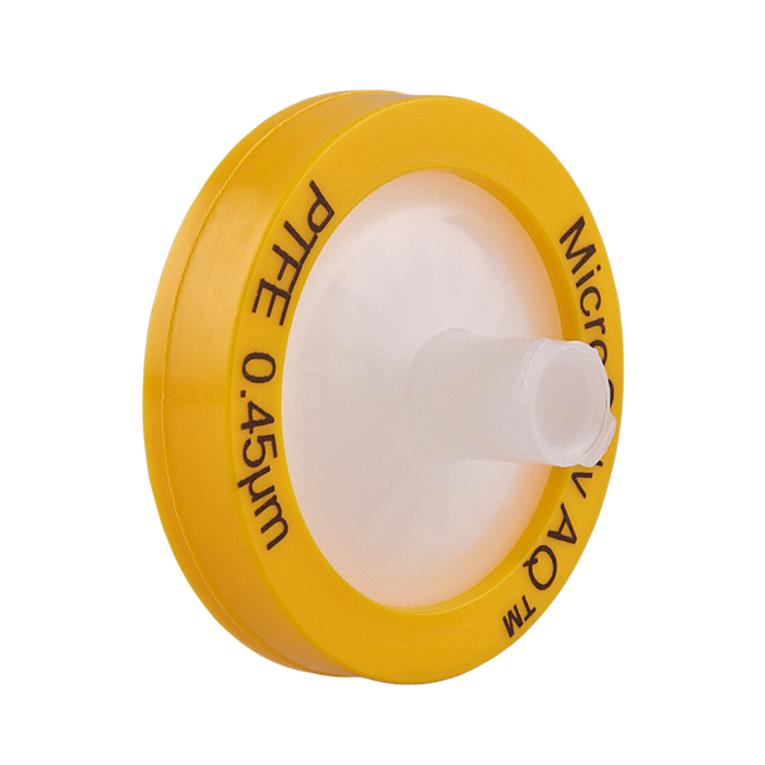 Syringe Filters, 25mm, PTFE, 0.45um Pore Size. Yellow Polypropylene, AQ Brand. 1000/CS.
