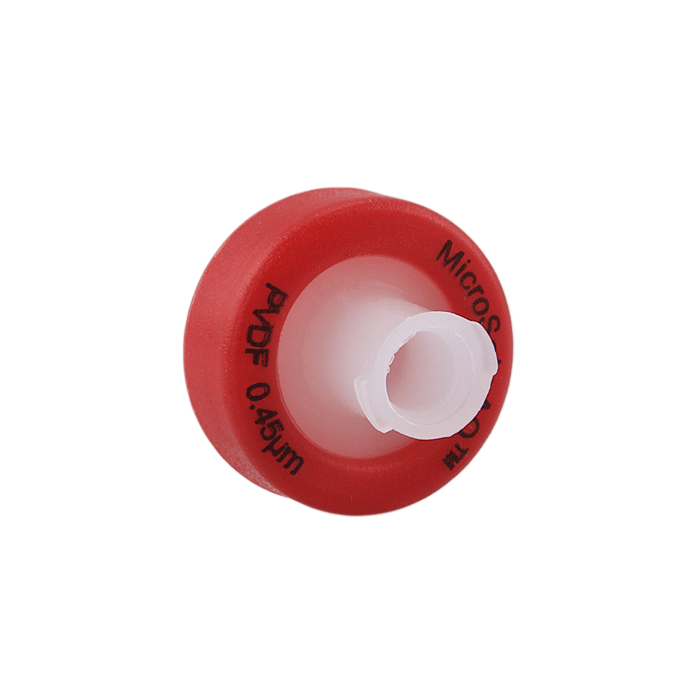Syringe Filters, 13mm, PVDF, 0.45um Pore Size. Red Polypropylene, AQ Brand. 50/PK.