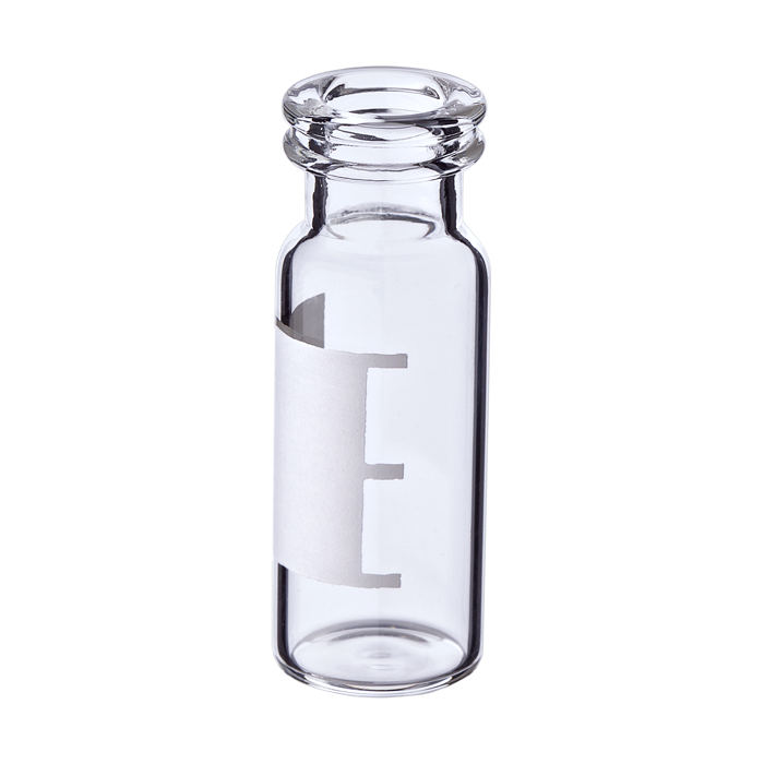 Vials, Snap Top, Glass. Clear, 2ml, with Write-On Patch and fill lines. An 11mm snap-ring and 12x32mm outer dimensions. For use as an autosampler vial. RSA Brand. 100/PK