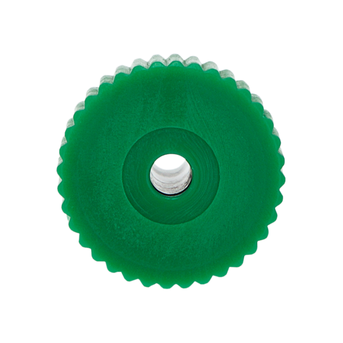 Tubing Connector Nuts, low pressure, 1/16 inch, Delrin, green with 1/4-28 screw threads, for use with flange free, polymeric tubing. ARE-Applied Research brand. 10/PK.