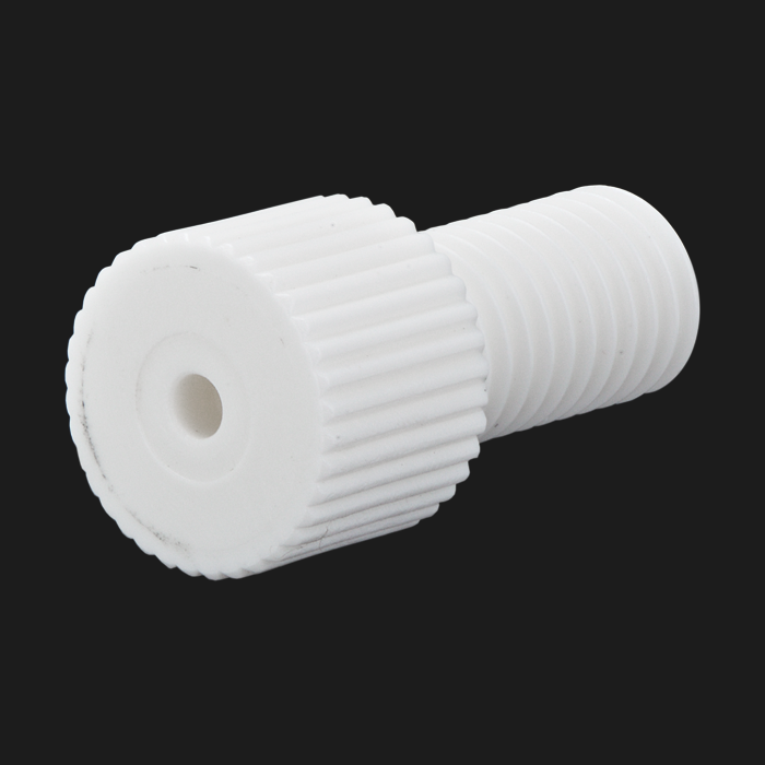 These tubing connector nuts are used to connect 1/16th inch (1.6 mm) OD polymeric tubing in the low pressures zones of HPLC systems and other low pressure, fluidic uses.