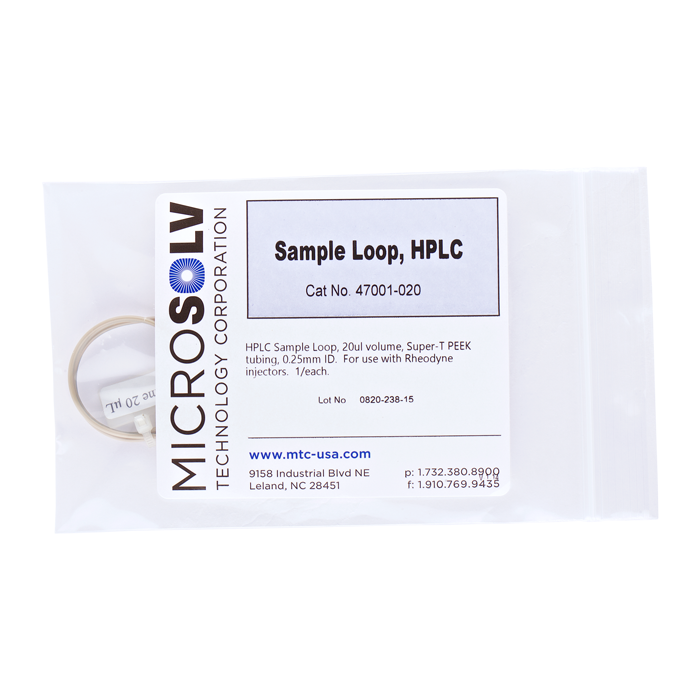 A label with the sample loop volume is attached. Use these loops with Rheodyne® or Cheminert® brands of injector valves.
