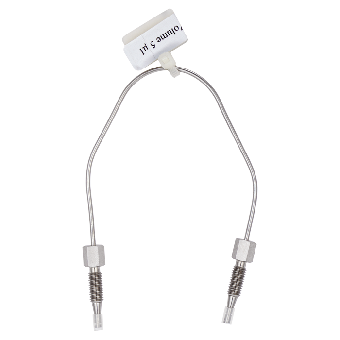 Tubing is 0.18mm ID (+/- 0.025mm) and is supplied with 2 two-piece, small hex head, SS, high pressure tubing connectors with ferrules for fitting on the injectors. Tubing end cuts are made using EDC (electronic discharge) techniques to achieve square and burr free ends for zero-dead volume connections. A label with the loop volume is attached.