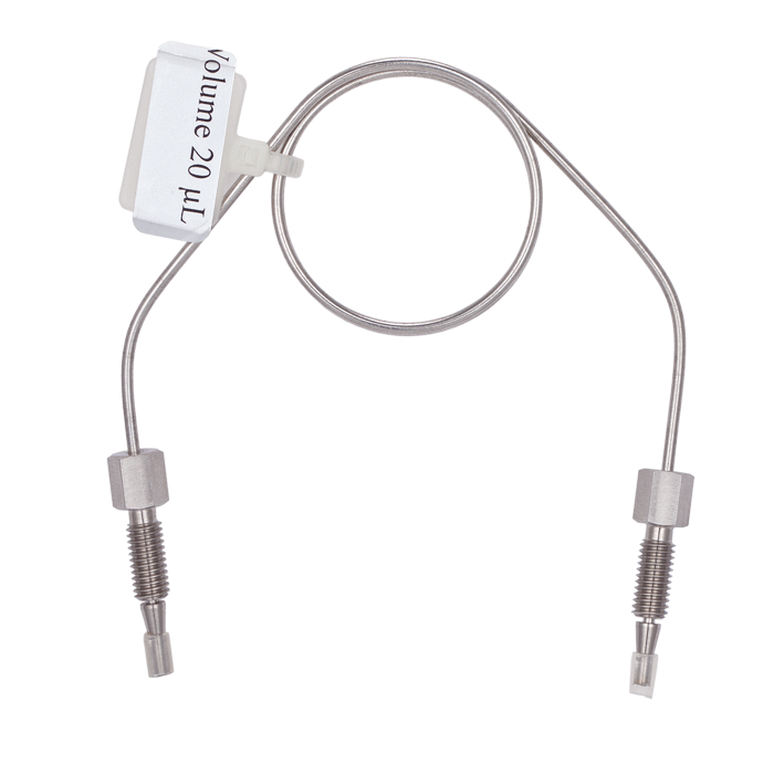 Tubing is 0.25mm ID (+/- 0.025mm) and is supplied with 2 two-piece, small hex head, SS, high pressure tubing connectors with ferrules for fitting on the injectors. Tubing end cuts are made using EDC (electronic discharge) techniques to achieve square and burr free ends for zero-dead volume connections. A label with the loop volume is attached.