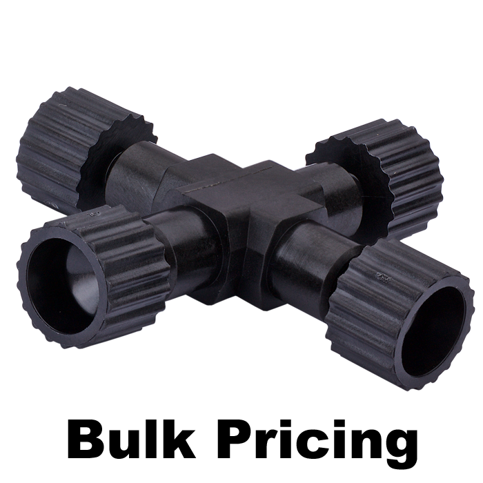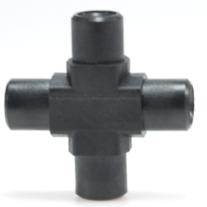 Union, Connector Kits, Cross, high pressure, 0.50 mm / 0.020 through hole with 10-32 screw threads. Carbon PEEK Endure, with connector nuts. Use with 1/16 tubing. ARE-Applied Research brand. Bulk Price.